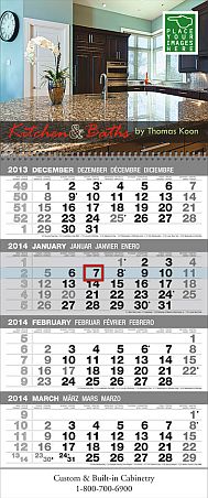 Multi-Month View style calendars have several months displayed at once for quick reference. The construction can be in Single Panel, 2 Panel, 4 Panel, 5 Panel and up to 7 panel for a 6 months in view style. Shown here are samples of 3-month, 4-month, 5-month and 6-month in view styles, with additional custom calendar options available on our website. With or without date slider, Stapled, Tinned, Spiral bound, Multiple Month View calendars can be customized to your specification. Multi Month view calendars are a great asset and advertising vehicle for all businesses, small and large, promoting their services and products all year round and quite practical for logistics and planning.