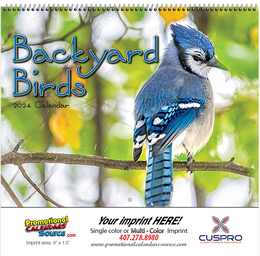A selection of Promotional Bird Calendars with images of many different birds: Backyard Birds, SongBirds, Cardinals, Finches, Vireos, Chickadees, Kinglets, Verdins, Bluejays and more.