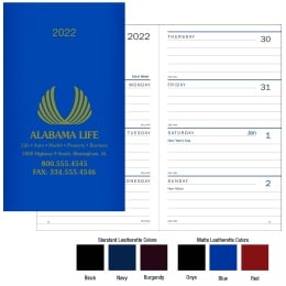 Promotional Weekly Pocket Planners available in a variety of styles, covers and sizes. Small in size to fit in a pocket or purse, with lots of room for your notations and a generous imprint area on the front cover for your company imprint and logo.
