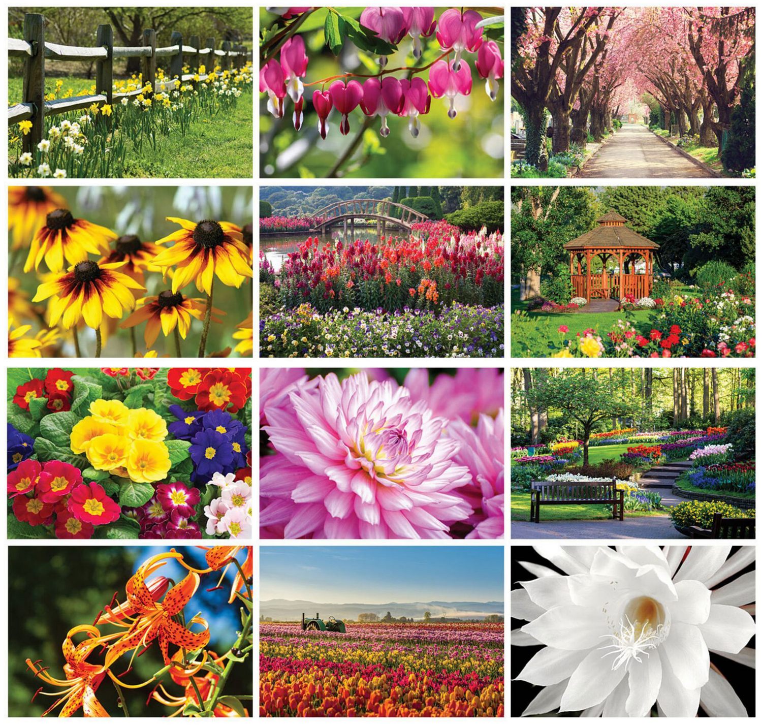 Gardening, Household, Office, Photography, Stitched, Garden Splendor, Wall Display, Holiday, Monthly Grid, 13 Month, Sunflower, Blooming Cactus, Rose, Tulip