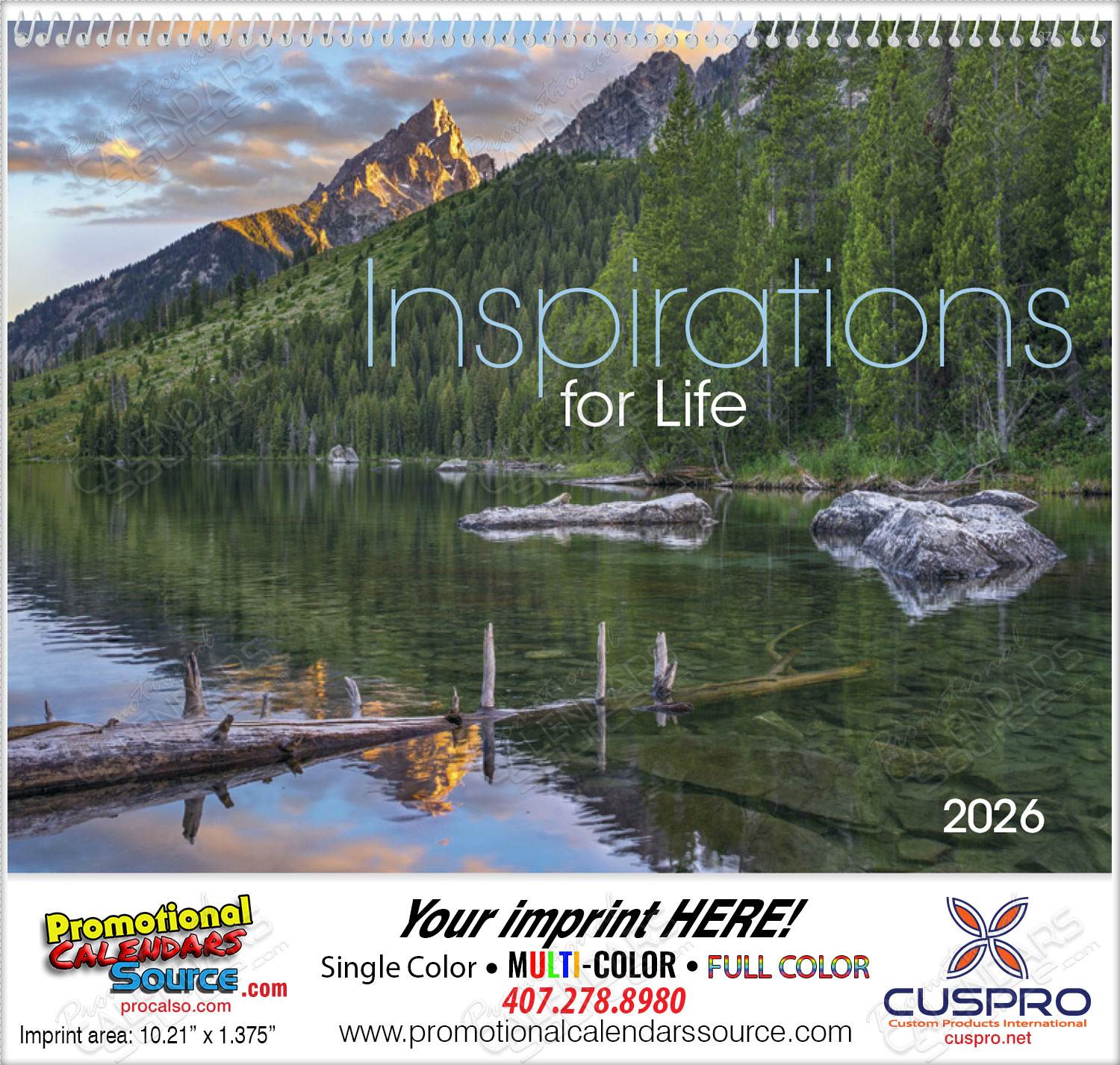 Inspirations for Life wall promo calendar with spectacular scenes and inspiring quotes to support your message. Size open 11" x 19" this calendar will inspire more business.